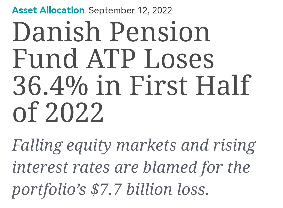1: Danish pension fund lost 36.4% during H2 2022! My god this is a huge decline for what should be a relatively conservative portfolio.