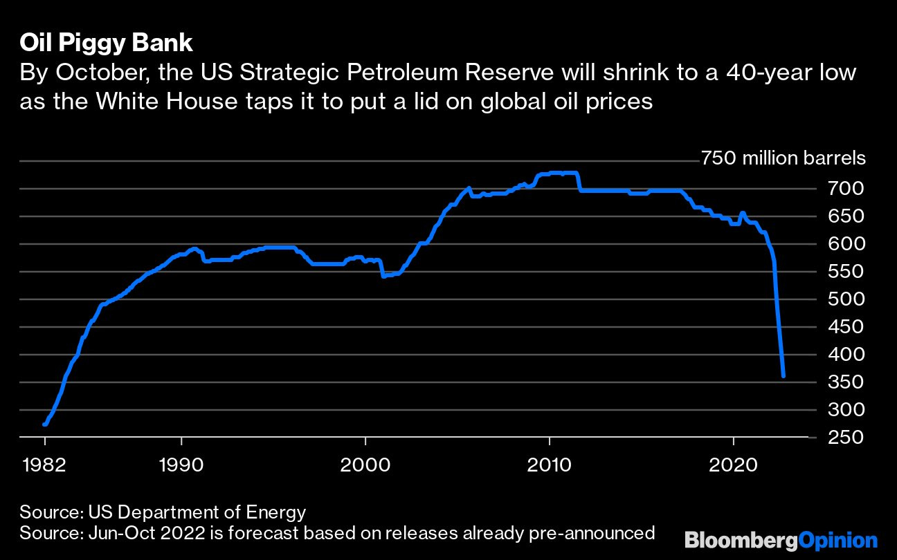 4: The ongoing 1 million barrel daily release from the US Strategic Petroleum Reserve has effectively calmed energy prices, mitigating pain at the pump. Today, however, reserves are at a 40 year low and this tailwind will soon become a headwind when the reserve needs to be refilled. The White House has said it will start refilling if oil hits $80.